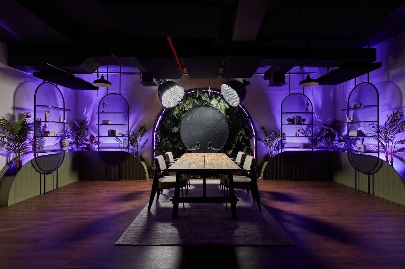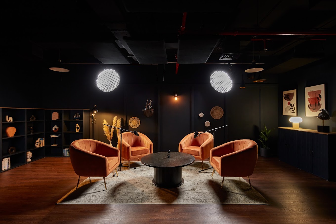 Choisissez le décor idéal pour votre émission parmi notre large gamme de studios de podcast de classe mondiale, Vous pouvez les personnaliser avec des accessoires et des éléments de marque pour les aligner sur votre vision unique, ou les utiliser tels quels.